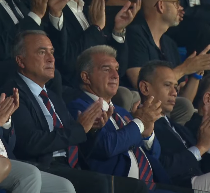 球迷们和巴萨高层全体起立鼓掌,向他致以热烈的掌声。